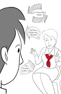 Active listening is all bright-eyed, big smile and nodding approval kind of a listening. Deeper listening is reading between the lines and “feeling” things rather than just hearing the words. Compassionate listening is, really, getting ready to say “Oh dear, I know exactly what you are going through but let me tell you about the time… yadi-yadi-ya!”